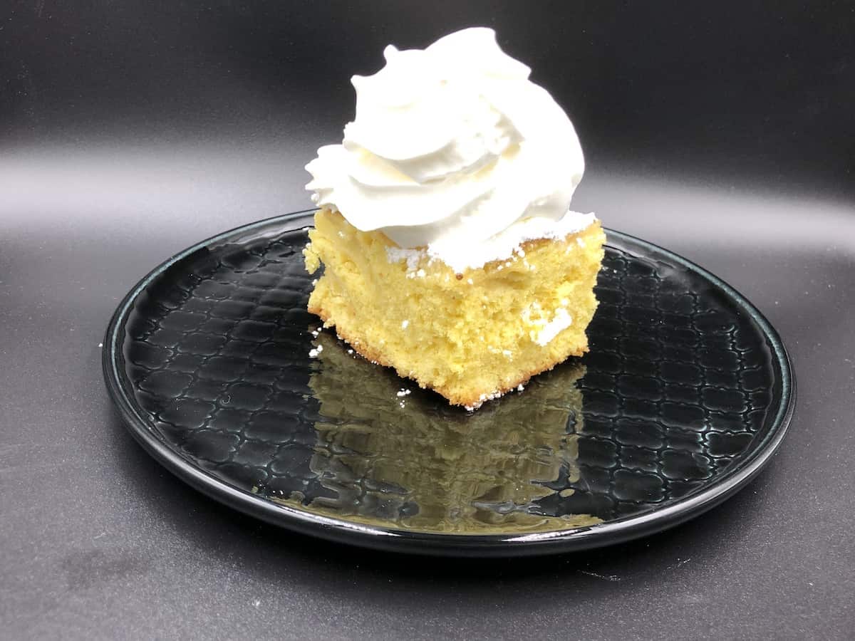 The apple sponge cake tastes best when served with powdered sugar. If it’s too sweet to you, you may eat it solo.
