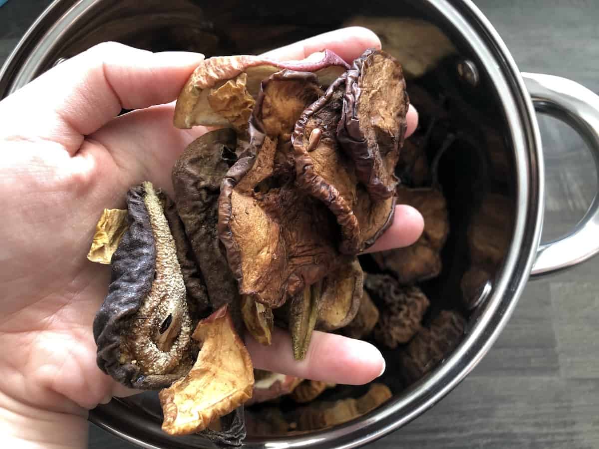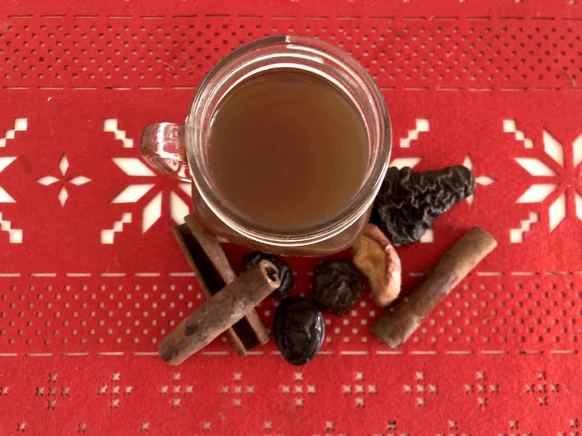 Kompot is a traditional Polish drink (see my summer kompot recipe). It’s very easy to make: all you need to do are fruits and water. You don’t really have fresh fruits in the wintertime, that’s why cooking standard kompot is not possible during Christmas. That’s why Polish housewives came up with an idea for a very special type of drink- kompot z suszu.