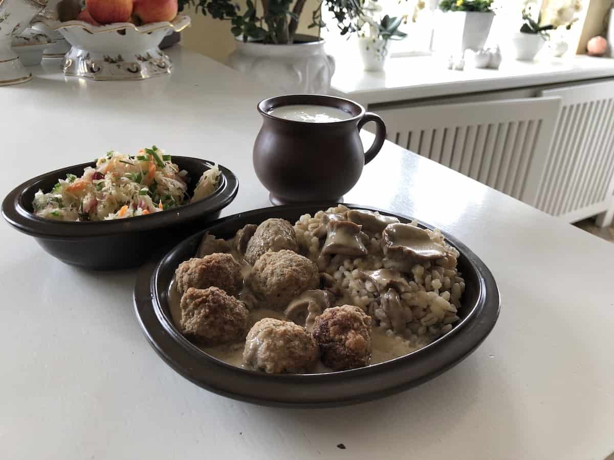 Wild edible mushrooms taste better with Polish meatballs, however, you can use champignons as well. It’s especially recommended if you want to share this dish with kids- they are not supposed to eat mushrooms until they reach the age of 12.